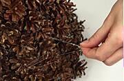 Jeśli przyniesiesz z lasu wilgotne szyszki, musisz wcześniej rozłożyć je na kilka dni w ciepłym i suchym miejscu, żeby się „otworzyły”. Posortuj je według rozmiaru i wyrzuć uszkodzone. Na każdą szyszkę wyciskaj sporą kroplę kleju, aby Twoja choinka była wytrzymała i nie rozpadła się podczas ozdabiania lub przenoszenia z miejsca na miejsce.