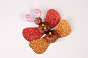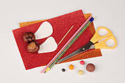Pozostałą część wykałaczki skróć i wbij w jeden z kasztanów, tworząc szyję, na której umocujesz plastelinową główkę. Z małych kuleczek plasteliny zrób oczka. Utocz cienki wałeczek z plasteliny na ryjek motylka.