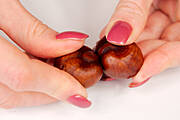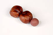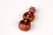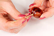 Odłam kawałek wykałaczki. Ostrym końcem zrób dziurki w obu kasztanach i połącz je. Tułów gotowy.