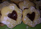 Pełne serduszko sklejać z serduszkiem z dziurką za pomoca gęstej domowej konfitury, marmolady lub nutelli. Jeśli serduszka zostały sklejone marmoladą, dziurkę wypełnić po brzegi nutellą, jeśli sklejaliśmy ciasteczka nutellą, wypełnić otwór konfiturą lub włożyć wisienkę z alkoholem.