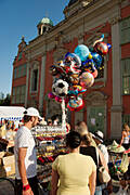 Nie co dzień na tle wyniosłej Kaplicy Królewskiej kołyszą się pęki wypełnionych helem balonów, a przed największym na świecie ceglanym kościołem sterczą wieżyczki dmuchanych dziecięcych zjeżdżalni. Konsumpcyjna kultura wdziera się bez najmniejszego zażenowania w świat fundamentalnych dla ludzkiego istnienia wartości. I chyba nie ma sensu się gorszyć, skoro sami Dominikanie ponad 700 lat temu, chcąc zachęcić wiernych do uczestniczenia w mszach odpustowych, ubiegali się o pozwolenie na urządzanie jarmarku.