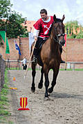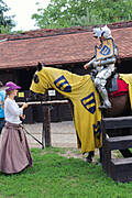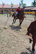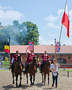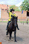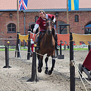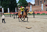 Można też do Gniewu po prostu przyjechać i na żywo chłonąć atmosferę tego magicznego miejsca, które każemu ma coś intrygujące do zaoferowania. Dwa lata temu całkowicie pochłonęły mnie szarże husarii, która łopotem słynnych skrzydeł ogłuszała niknących w piaskowej kurzawie oglądających. Starcia rycerzy, próbujących wzajemnie skruszyć kopie i wysadzić przeciwnika z siodła, gonitwy z kopią do pierścienia i saracena, pokazy panowania nad wierzchowcami... okazały się równie absorbujące. W tym roku zamek powitał nas skromnie. Gospodarzy, których zadaniem było przeniesienie nas w dawne czasy jakby mniej, goście też nie dopisali w liczbie odpowiadającej licznikowi wizyt z lat poprzednich. Kameralna atmosfera wynikała chyba z potrzeby rozłożenia imprezy na wiele letnich tygodni. Ja przyjechałam na występy Polsko-Australijskie. I bynajmniej nie wyjechałam rozczarowana. A konie... mimo przymocowanych do stajennych boksów tabliczek z dużymi napisami "Nie karmić, nie głaskać - gryzą!" okazały się łagodne jak baranki i łase na pieszczoty. Wyciągały miękkie chrapy do przechodzących i chyliły piękne głowy, licząc na dotyk otwartej dłoni". I jak tu stosować się do zakazów?!