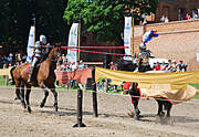 Do Gniewu można przyjechać obejrzeć "gonitwę na ostre" - konkurencję, w której rycerze z Polski i zza granicy na poważnie wysadzają się z siodła i kruszą kopie. Widowisko to corocznie przyciąga dużą liczbę widzów.