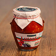 Sięgam po zgrabne szklane naczynie i sprawdzam, jakie składniki producent wymienia na etykiecie. W składzie mamy czerwoną paprykę, pomidory, bakłażana, puree marchwiowe, cukier, rafinowany olej słonecznikowy, ostrą paprykę, cebulę, czosnek, nać pietruszki oraz odrobinę mąki ziemniaczanej pełniącej rolę zagęstnika. Papryki piecze się, następnie pozbawia skórki i miksuje z pozostałymi składnikami (najczęściej ugotowanymi) aż do uzyskania konsystencji grubo mielonego sosu, nieco przypominającego pod względem smaku i koloru ajwar. Przepisów na lutenicę jest co niemiara, każdy producent ma swoje sekrety pozwalające na wykonanie jak najlepszego w smaku sosu. Trzeba przyznać, że firmie Premium Rosa udało się opracować recepturę doskonałą, która podbije serce niejednego smakosza.