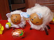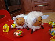 Z brązowego wyciorka robimy 4 nogi i przyklejamy od spodu (to będą nogi. Najlepiej nogi robić z podwójnie złożonego wyciorka aby utrzymały ciężar naszej owieczki)