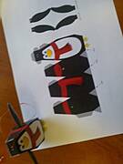 3. Klej rozprowadzić na szarych elementach i skleić pingwina.