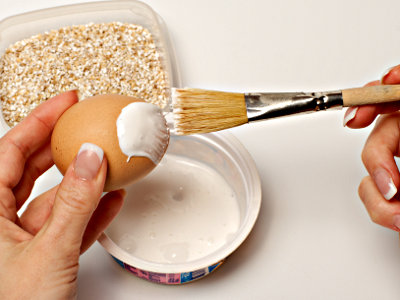 1. Przygotujcie materiały potrzebne do zrobienia pisanki: wydmuszki, ugotowane na twardo lub plastikowe jajka, drobną kaszę jęczmienną, gęsty klej wikol oraz pędzelek, przydadzą się również flamastry, różnego rodzaju farby, nawet zwykłe plakatówki.
