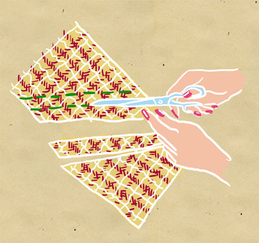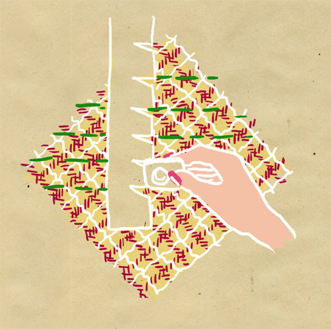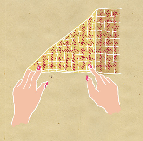 Złóż materiał po przekątnej, wyznaczając pierwszą linię cięcia pliski.