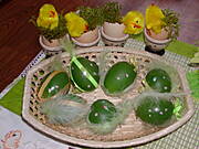 co prawda pomysł ze skorupkami gdzieś widziałam i nie jest moj ale powiem jak go zrobic: jajka wybić jak najwyżej i do nich włożyć rzerzuche,