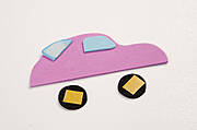 Autko można wykonać nawet nie mając piankowych kartek, wystarczą zwykłe kolorowe kartki z bloku technicznego, z których wycinamy poszczególne elementy i łączymy je za pomocą kawałków grubej dwustronnej taśmy klejącej, uzyskując w ten sposób wrażenie przestrzenności. Piankowe kartki można także łączyć, używając kleju magicznego lub uniwersalnego. Z piankowych skrawków robimy kolorowy obrazek-wyklejankę.