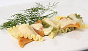 Łososia kup mocno wędzonego i koniecznie najwyższej jakości, pachnącego jak północne morze podczas leniwego falowania. Różyczki brokułów i makaron ugotuj osobno w lekko osolonym wrzątku. Koniecznie al dente.
