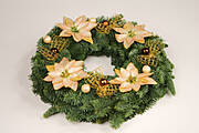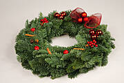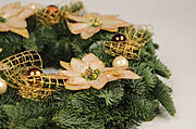 Bazę w postaci gotowych wieńców z żywych gałązek kupujemy na giełdzie kwiatowej, rynku lub w centrach ogrodniczych, porównując wcześniej ceny produktów. Następnie za pomocą pistoletu klejowego mocujemy wybrane ozdoby, np bombki, sztuczne jabłuszka, suszony anyż, laski cynamonu, kokardy kwiaciarskie odporne na działanie deszczu przygotowane z fragmentów kolorowej siatki. Efektownie wyglądają na zielonych gałązkach sztuczne kwiaty gwiazdy betlejemskiej. Po skończonej pracy czekamy chwilę, aby klej związał i zdejmujemy liczne klejowe niteczki, które opatuliły nasze wieńce na podobieństwo anielskiego włosa.