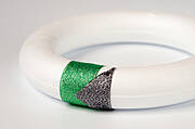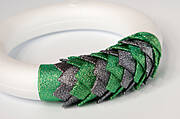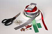Marzeno, przyznam się, że nie mierzyłam, ale to dość łatwo oszacować. Wystarczy policzyć ilość rzędów w poszczególnych kolorach. Z jednej strony wieńca zwykle upinamy około 18 okrążeń (na przemian srebrnych i zielonych), czyli w sumie 36 pomnożone przez 8 (bo tyle w rzędzie jednego koloru znajduje się trójkącików) = 288 razy 5,2 cm = 1497,6 cm plus około 30 cm na początkowe i końcowe owinięcie maskujące = 1527,6 cm (czyli 15,276 metra w sumie, czyli po 8 metrów w każdym kolorze, licząc z nadwyżką na wszelki wypadek :D). Plus kawałek tasiemek w innych odcieniach na kokardę. Ufff :)