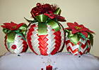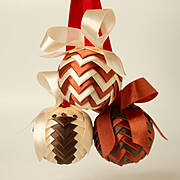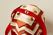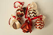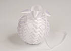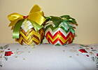 Najlepszy efekt wizualny daje zachowywanie siedmiomilimetrowych odstępów pomiędzy kolejnymi zakładkami. Odległości nie powinny być większe niż 1 cm, aby nie zaczęły być widoczne główki szpilek, którymi przymocowujemy do bombki materiał.