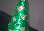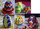 W taki sam sposób upinamy kolejne 4 trójkąty w tym samym kolorze. Czyli na pas w jednym kolorze zużywamy w sumie 8 trójkącików. Jeśli chcemy, aby bombka miała pionowe kolorowe pasy, przypinamy 4 trójkąty w jednym kolorze, a następnie 4 w innym.