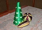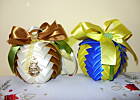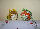 Wbijamy ozdobną szpilkę ze szklanym koralikiem, aby zamaskować szpilki i ozdabiamy bombkę dowolnymi kokardkami. Gotowe. Można zabrać się za wykonanie kolejnych bombek karczochów.