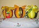 Aż pewnego dnia... spotkałam kogoś, kto regularnie mówi mi cześć i od czasu do czasu podrzuca karton pachnących jabłek i marchewki tak słodkiej, że aż trudno uwierzyć... oraz dynię, która ledwo mieści się w bagażniku sporego auta. Ten ktoś (nazwijmy go Anią) wyczarował w ubiegłym roku kilkanaście (a może kilkadziesiąt?) bożonarodzeniowych bombek i wielkanocnych jajek karczochów. Bombki, jak to bombki, zapakowały się ozdobnie i podarowały w świątecznym prezencie. Jajka bardzo chciały być niespodzianką i też powędrowały w świat. Kilka na szczęście zostało i zapomniało zeskoczyć z zawieszek przyczepionych do stojaka dużej ozdobnej lampy.