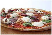 Po tym czasie wyjmuję ślicznie wyrośnięte, bardzo delikatne ciasto - sprawia wrażenie "rozlazłego" w misce. Piekarnik nastawiam na maksymalną temperaturę (domowe piekarniki nie przekraczają 250 st. a pamiętajmy, że piece do pizzy mają temperaturę nawet 300-350 stopni - tam pizza potrzebuje 3-5 minut żeby się upiec), w której będę za chwilę piekła pizze. Dzielę ciasto na porcje (w zalezności od tego ile potrzebujemy placków i jak grubych), wykładam na stolnicę po jednym, wałkuję lub formuję dłońmi odpowiedni placek, który układam na posmarowanej oliwą blaszce do pieczenia pizzy (ja mam taką okrągłą z otworami). To ciasto daje się ładnie naciągać. Kiedy już zabieram się za układanie składników - układam je dopiero przed samym pieczeniem, żeby ciasto nie zwilgotniało od sosu. Ponieważ pieczenie zajmuje zaledwie kilka minut (6-12 minut), każdy placek mogę robic na bieżąco - jest to wskazane zwłaszcza w sytuacji, jeśli mamy tylko jedną formę do pieczenia pizzy. Postaram się niebawem wrzucić poradnik dotyczący dobrego domowego sosu do pizzy.