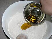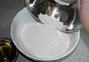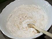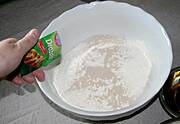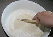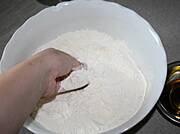 dokładnie mieszam mąkę palcami, żeby drożdże rozprowadzić w mące.