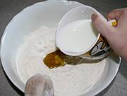 a następnie wlewam mieszaninę wody, mleka i cukru.