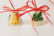 Teraz wystarczy zawiązać na kawałku kolorowej rafii dwa węzełki (jeden będzie sercem dzwoneczka) i zawiązać u góry ozdobną kokardkę. Dzwoneczek z doniczki gotowy.
