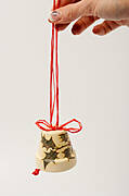 Aby utrwalić dzwoneczek, możesz pomalować go warstwą lakieru. Nie musi to być wykończeniowy lakier do decoupagu, można użyć zwykłego bezbarwnego lakieru do drewna, matowego lub błyszczącego.