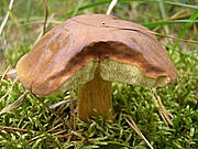 Podgrzybek brunatny dorównuje w smaku borowikowi szlachetnemu. Jest to jeden z najczęściej występujących grzybów borowikowatych. Można go znależć w lasach iglastych i liściastych od czerwca do listopada. Kapelusz ma kasztanowo-czerwony lub ciemnobrązowy, początkowo nieraz lekko zamszowy, później gładki. Gdy jest mokry, jego powierzchnia staje się śluzowata. Młode owocniki, początkowo kuliste, a później poduchowate, osiagają średnicę od 5 do 15 cm. Rurki są bladokremowe, w dojrzalszych owocnikach lekko oliwkowe, po przekrojeniu zabarwiają się na niebiesko. Baryłkowaty trzon koloru przeważnie jasnobrązowego, lub z brązowymi włóknami na oliwkowo-żółtym tle, z dojrzewaniem stopniowo nabiera cylindrycznego kształtu. Pod dotknięciem niekiedy lekko sinieje. Miaższ grzyba jest twardy i jędrny, kremowy lub bladożółty.