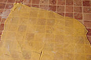Ciasto zagniotłam z podwójnej porcji, mama wytłukła go wałkiem że aż ją ręka boli :) Ciasto pokroiłam na 4 cześci i wyjdą 4 placki, na zdjęciu jest porcja z jednego placka, oj będzie co pochrupać.