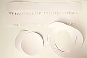 Przykładamy przed chwilą wykonany rulon do brystolu i zaznaczamy ołówkiem wielkość koła-denka kapelusza. Za pomocą cyrkla odrysowujemy mniejsze koło na denko, oraz większe zewnętrzne na rondo. Wycinamy nożyczkami lub nożykiem modelarskim.