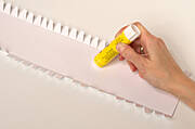 Z brystolu wycinamy prostokątny pas o szerokości np. 8 cm (czym wyższy, tym bardziej kapelusz będzie przypominał cylinder). Dopasowujemy długość pasa do obwodu głowy dziecka, za pomocą zszywacza biurowego zczepiamy końce pasa na zakładkę.