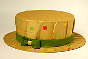 Możemy teraz przystąpić do ozdabiania naszego kapelusza, np. oklejając go kolorową krepiną w barwach jesieni. Wybrałam złotą, ale równie dobrze może to być marszczona bibuła w kolorze ciemnej zieleni, brązu, pomarańczy, czerwieni lub w różnych ciepłych żółtych odcieniach.