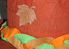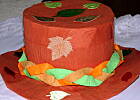 Jeszcze tylko jesienne motywy, np. listki wycięte za pomocą odzobnego dziurkacza, przyklejone i ozdobione brokatowym klejem i kapelusz gotowy. Można go zabrać na bal.