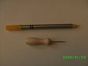 -wskazany jest sztyft 2-iglowy (mozna go zrobic z podwojnej igly do maszyny lub 2 szpilek czy igiel rownolegle osadzonych w oprawce po mazaku)