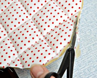 Obszywanie łapki lamówką rozpocznij od narożnika, podginając ok. 1 cm brzegu.