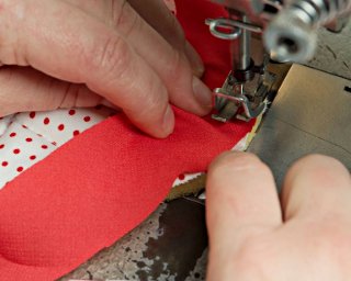 Zakończ przyszywanie lamówki założeniem, jak na początku.