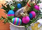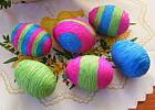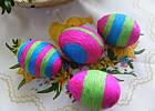 Można zrobić pisanki jednokolorowe i ozdobić według własnego pomysłu bibułą lub innymi gadżetami (kwiatuszki, koraliki, piórka itp) lub zrobić pisanki różnokolorowe.