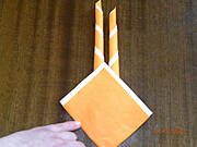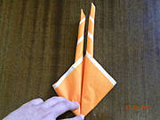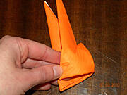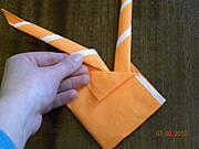 8. Zaczynamy formować uszy zajączka. W tym celu wywijamy górne rogi na boki: