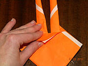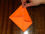 10. Odwracamy serwetkę zagięciami do blatu i zaginamy do góry dolny trójkąt: