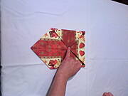 3. Układamy serwetkę zagięciami do blatu i znów zaginamy wszystkie rogi.