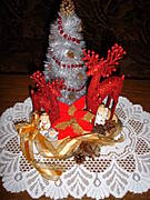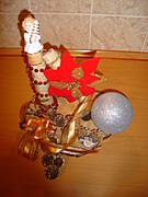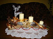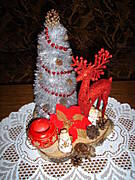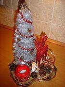 Do wykonania takiego stroiku potrzebny będzie podkład, do którego umocujemy ozdoby (u mnie posłużył kawałek drzewa), pistolet klejowy, szyszki, świeczka, różne ozdóbki świąteczne, sztuczna gwiazda betlejemska, kokardki, wstążeczki, mogą być orzech, aniołki itp. Oczywiście wg. własnego gustu. Wszystkie ozdoby mocujemy za pomocą pistoletu klejowego.