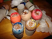 sporo osób do obdarowania. a ponieważ lubię utrudniać sobie życie to zamiast tak jak to opisałaś łatwo i przyjemnie wykorzystać ładne doniczki zdecydowała się na wydmuszki.