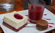 Panna cotta flirtująca z francuskim (nareszcie!) makaronikiem. Jest ich i więcej... są wszędzie, nawet w Louvrze.
