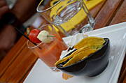 A przystawka już z niedaleka. Gazpacho i guacamole prosto nie z Francji.
