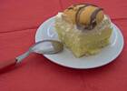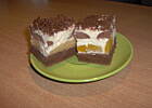 ciasto pyszne, masa super smaczna, z racju tego ze nie wszyscy domownicy lubia banany przpis nieco zmienilam robiac polowe ciasta z brzoskwiniami z puszki a pooowe z bananami, masy wychodzi naprawde duzo wiec na owoce wylozylam polowe masy, na nia dalam ciemne okragle biszkopty i na biszkopty pozostala polowe masy, wierzch posypalam pokruszonym ciemnym ciastem( wyszlo mi troche krzywe i musialm skroic go rownosci) polecam to ciasto. Sera uzylam takiego we wiaderko delfiko o smaku waniliowym.