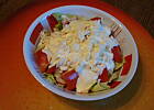 Uwielbiam pomidory i czosnek ... więc dziś sałatka była przygotowana na kolację . Przygotowałam ją na liściach sałaty, pół cebulki pokrojonej w kostkę, trochę rzodkiewki, wszysko zostało polane sosem czosnkowym przygotowanym na bazie śmietany 12 % z łyżką majonezu. Dodałam tylko jeden ząbek czosnku - ten świeży jest dla mnie bardzo mocny. Wierzch udekorowany serem mozzarella.