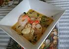 Bazowałam się na tym przepisie, ale dodałam trawę cytrynową, sos rybny i ostrygowy, szczyptę szafranu i mięso z homara zamiast paluszków krabowych. Właściwie to już zupełnie inna zupa, ale jak powiedziałam , inspiracja tym przepisem była. Oczywiście nie dodawałam mąki.