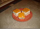 Robiłam to ciasto na niedzielę.Trochę tylko zmodyfikowałam, tzn.wiórki zalałam większą ilością kefiru, na wierzch wylałam galaretkę pomarańczową,a między biszkopt a masę kokosową dałam masę z budyniu ugotowanego na soku pomarańczowym. Ciasto wyszło wysokie, ładne i pyszne:)