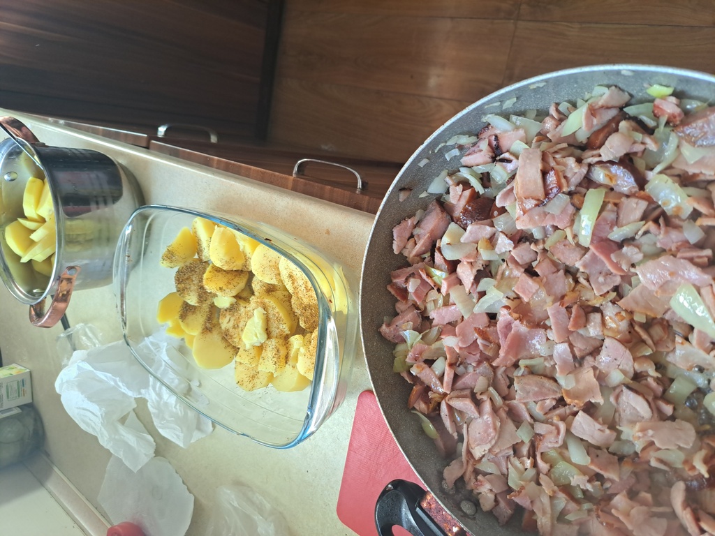 I ja spróbuję:ziemniaki cienko poszatkuję,surowe zapiekę - trwa to ciut dłużej; mięso poświąteczne pieczone czeka na swoją kolejkę