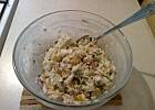 Smaczna, lekka sałatka pomimo majonezu. Dodałam paprykę konserwową, mam jeszcze swój zapas, a pierś ugotowałam. Całość smaku podkręciłam porem, bo za kukurydzą nie przepadamy. Dziękuję emesko :) POLECAM!