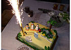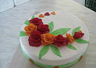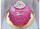 mój pierwszy tort z tej masy cukrowej. wcześniej używałam sztucznego marcepanu ale ta masa jest bardziej plastyczna i jedną ręką można ją przełożyć na tort...przy marcepanie cała łacina leciała przy obkładaniu tortu a tu pyk i jest :) wykonanie bardziej pracochłonne ale efekt i łatwość pracy z masą warte zachodu. dziękuję i pozdrawiam